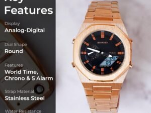 SKMEI Stainless Steel Men Analog Watch Dual-Display Electronic Watch with Luminous 30M Waterproof Watch Fashion Multifunctional Sports Watch for Men- 1816