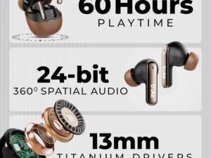 truke Mega 9 New Launch True Wireless in Ear Earbuds W/ 24-Bit Lossless Spatial Audio, 70H Battery Fast Charge Ear Buds, Leather Finish, 13mm Speakers TWS, 40ms Ultra Low Latency, 4Mics ENC