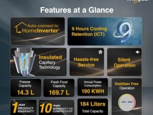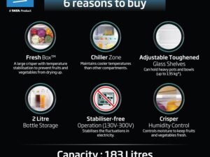 Voltas Beko, A Tata Product 183 L 5 Star Single Door Direct Cool Refrigerator with Quick Frezze (RDC215A / W0BBRTM0000GO, Bonita Blue, Fresh Box Technology)