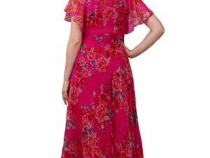 Fashion2wear Women’s Georgette Floral Digital Print Short Sleeve Full-Length Fit & Flare Long Gown Dress for Girls (ET-CYWN-E1LE)