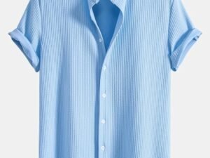 FINIVO FASHION Men’s Casual Cotton Plain Button Down Shirt Long Sleeve Textured Summer Beach Shirt for Men