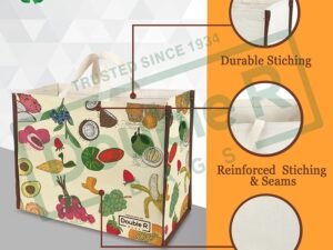 DOUBLE R BAGS Heavy Duty Cotton Canvas Grocery Shopping Bag | Eco-Friendly Cloth Tote for Vegetables, Milk, Fruits & Lunch | 33×44.4×20.3cm | 1 Compartment | Pack of 1 Fruit Print