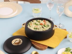 Cello Aurum Luxury Inner Stainless Steel Insulated Hot-pot 1250ml, Black | Easy Grip Lid & Frim Twist Lock | BPA-Free, Durable, Suitable for Hot & Cold | Hot Box for Kitchen | Hot Pot for Home