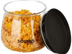 Amazon Solimo Plastic Storage Jar and Container Set I Air Tight & BPA Free Containers for Kitchen Storage Set I Grocery Kitchen Container Set I Multipurpose Jar | 800 Ml Each | Set 4 | Black