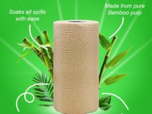Beco Bamboo – 2 Ply Kitchen Tissue/Towel Roll | 120 Pulls (60 pulls x 2 Rolls) | 100% Eco-Friendly – Pure Bamboo Pulp |Soft & Super Absorbent | Food Safe & Chemical Free Tissue Papers