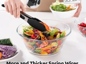 Grab Silicone Food Tongs for Kitchen, Barbeque and Serving – 9 inch – 1 Year Warranty – FDA Approved Silicone, 315°C Heat-Resistant, Salad Tong, Serving Tong, BBQ Tong – Black