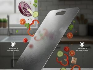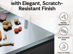 Herrlich Homes 304 Stainless Steel Chopping Board with Lip for Kitchen | Free Rollin Pin | Non Slip| Rust Proof | Easy to use| Round Edge| For Cutting Vegetables, Meat,Fish,Fruits | Medium |42 x 32 cm