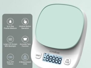 HOMEBASIC Digital Kitchen Weighing Scale 5Kg, High-Precision1g Accuracy | LCD Display, Tare Function, Multi-Units (g, oz, lb, ml) Portable Weight Machine Food Scale for Cooking Baking Diet (Green)