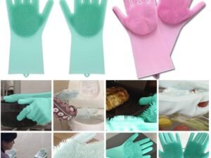 HUSB® Gloves Magic Silicone Dish Washing Gloves, Silicon Cleaning Gloves, Silicon Hand Gloves for Kitchen Dishwashing and Pet Grooming, Great for Washing Dish, Car, Bathroom (Multicolour, 1 Pair)