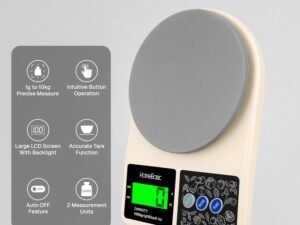 HOMEBASIC Digital Kitchen Weighing Scale 10Kg: High-Precision 1g Accuracy | Tare Function, LCD Display, Multi-Unit (g, oz) Portable Weight Machine Food Scale for Cooking Baking Diet (Beige+Grey)