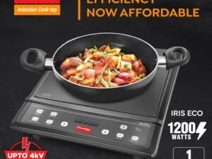 Prestige IRIS ECO 1200 W Induction Cooktop with Automatic Voltage Regulator |Indian Menu Option |High Voltage Surge Protection |Timer with User Pre-Set|1 year Warranty |Black