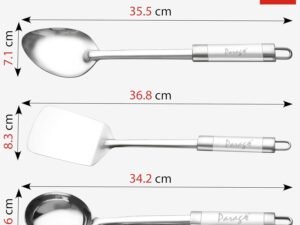 Parage 3 Pieces Stainless Steel Kitchen Tools for Home & Kitchen, Cooking & Serving, Basting Spoon (Chamcha), Ladle(Karchhi), Turner/Spatula (Palta), Dual Tone Handle Kitchen Gadgets, Silver