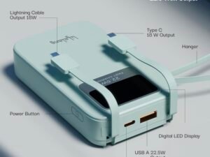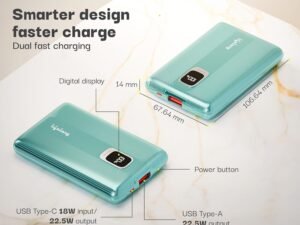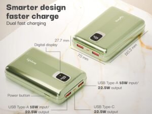 Lifelong Electronics 10000mAh Fast Charging Power Bank with Digital Display | Type C Input | 2 Output Ports | Quick Charge 3.0 | 22.5 W PD Powerbank | Cable Included (Teal Green)