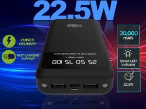 Orban 20000mAh High-Capacity Power Bank with Fast Charging USB & Type-C PD/QC Support for Smartphones, Tablets, Earbuds, and Headphones