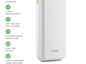 URBN 20000 mAh Lithium Polymer Power Bank QCPD with 20 Watt Super Fast Charging, White