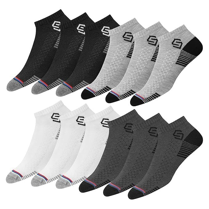 12 Pairs Sports Cotton Ankle Length Socks for Men, Pack of 12., Assorted