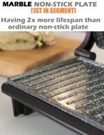 The inner plates are having marble non-stick coating (having 2x more lifespan than ordinary non stick). It helps you get the food out quickly when it’s done, without ruining the looks by sticking. Moreover, these marble non-stick plates are abrasion resistant for tougher, longer lasting quality.