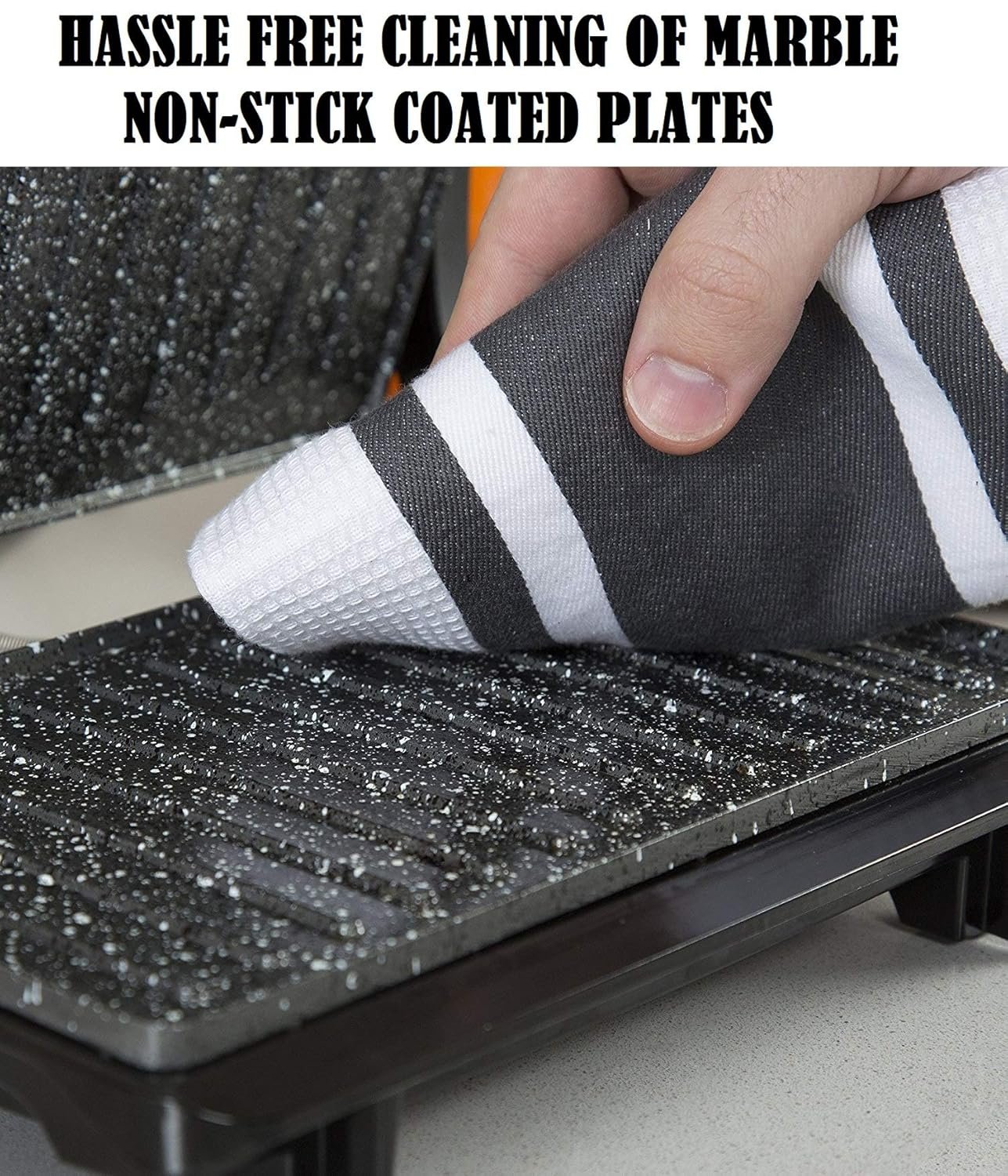 The inner plates are having marble non-stick coating (having 2x more lifespan than ordinary non stick). It helps you get the food out quickly when it’s done, without ruining the looks by sticking. Moreover, these marble non-stick plates are abrasion resistant for tougher, longer lasting quality.