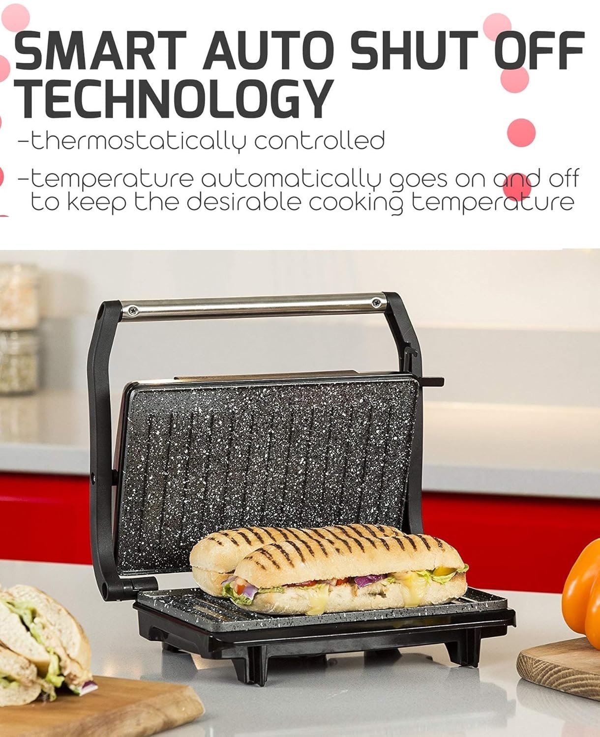 2 IN 1 Multi-utility Open Mini Press Griller for Sandwiches, Panini, Chicken with Marble Non-Stick Big Size Pate for Home, Cafe use (950 WATT)