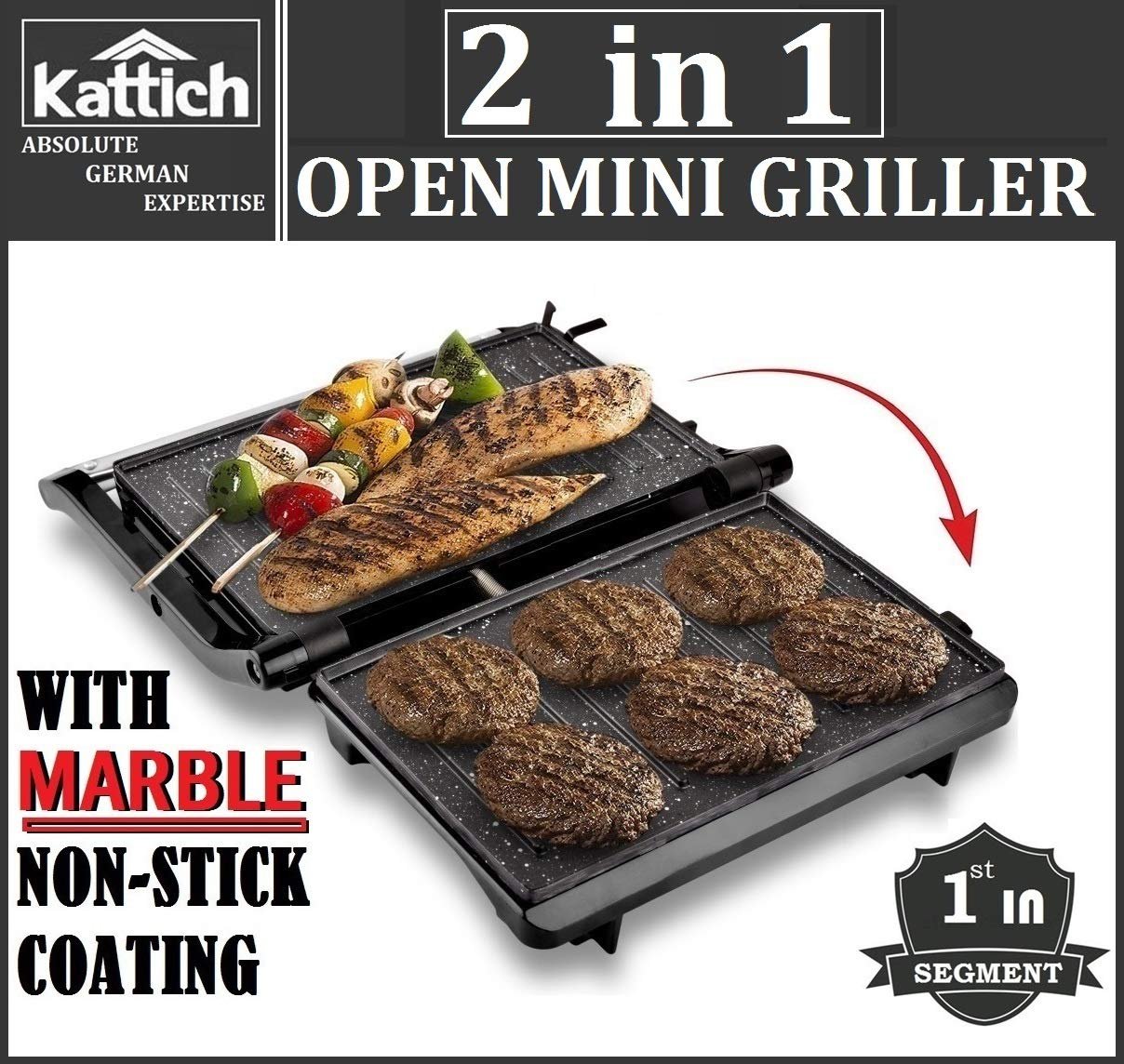 2-IN-1 VERSATILITY: This KATTICH Griller fully opens to 180 degree which doubles the efficiency and enables the option for full grilling. Moreover; we can close it to make contact grill. It can be used as panini maker and grill for sandwiches; BBQ; and pan-fried food