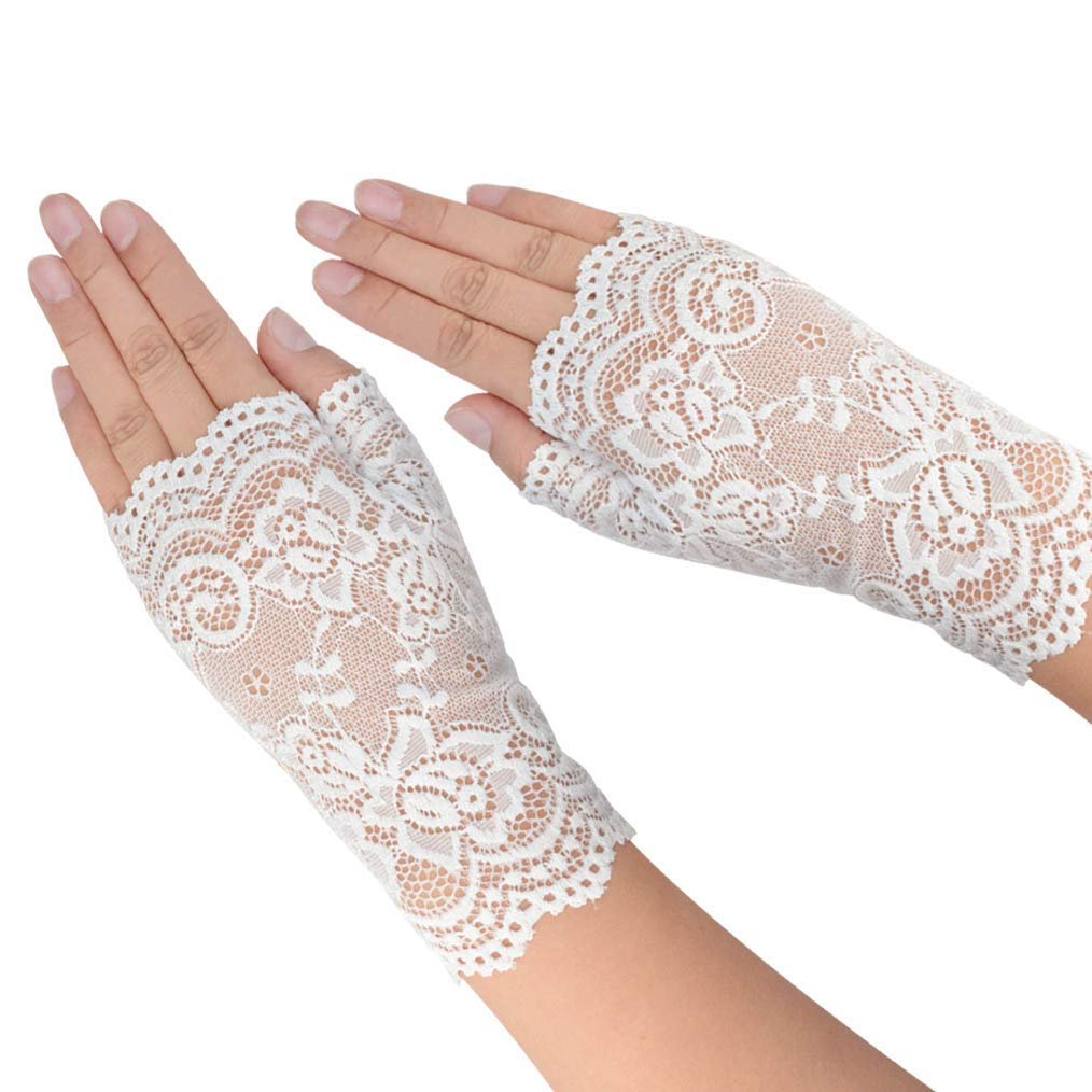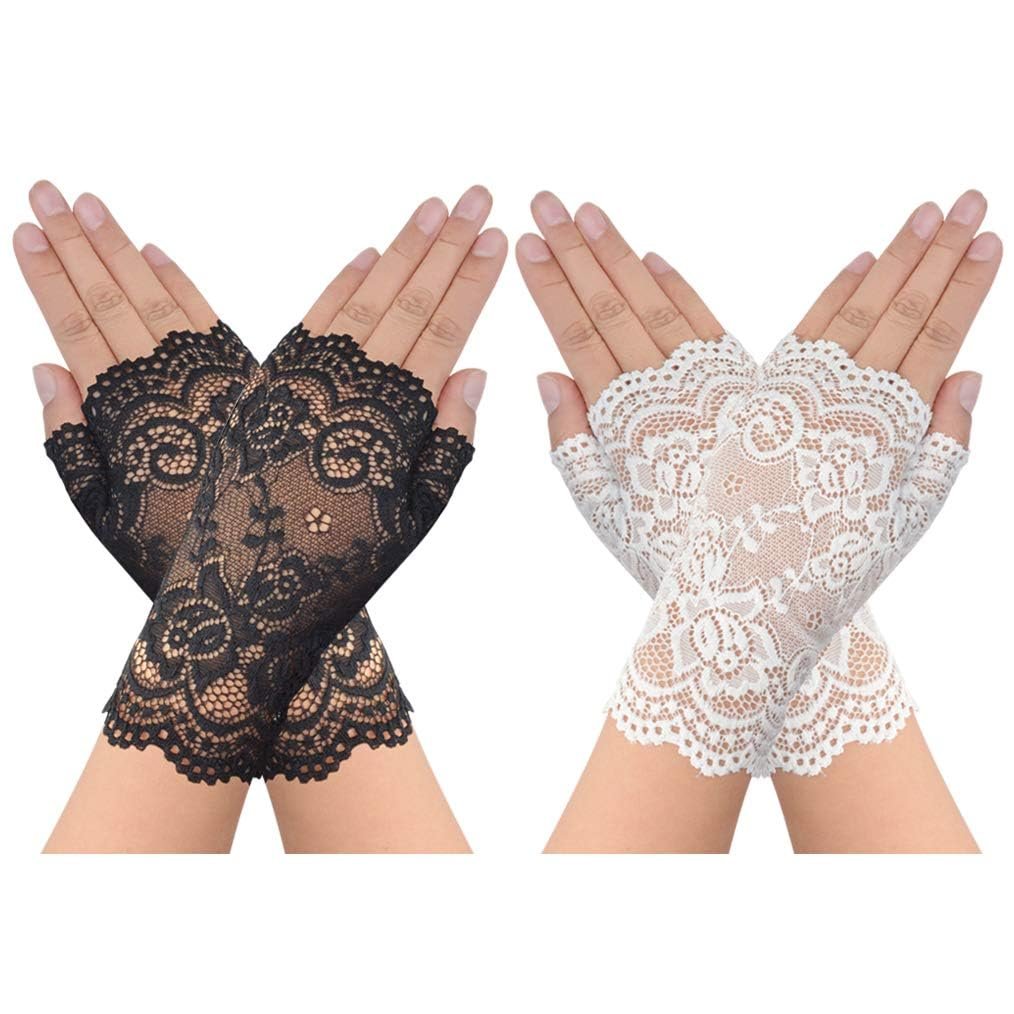 2 Pairs Women’s Lace Gloves Fingerless Floral Gloves for Bridal Prom Wedding Party Costume Accessories