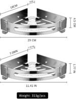 Feature:- Two Installation Methods- Bathroom Storage Baskets is installed with superglue, It does not need to be drilled and will not damage the wall If you want to install them on uneven wall, We also provide accessories for drilling. Water Filtration and Scratch Protection- No water, keep it dry and clean, Use rounded corners to prevent scratches. Double Layer Large Capacity- Double-layer large capacity: 29cm x 21cm x 4.5cm, You can adjust the installation height as needed. Rustproof & Waterproof- shower caddy is Made of SUS304 stainless steels, never rust and corrosion. Movable Hook- Two hooks at the Arc edge for hanging towel or bath ball. Specification: Material: Stainless Steel Color: Silver Surface: Matte Size: 29 x 21 x 4.5 cm (subject to the actual size) Weight: 1.85kg Installation Way: No-Drilling & Drilling, two ways. Package Includes: Triangle Shower Self X 2 Hang Buckle X 6 Nail Accessories Bag X 2 Assistant Stick X 4