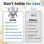4-in-1 Smart Kitchen Tool: This digital scale does more than weigh—it includes a detachable stainless steel bowl, a countdown timer, and room temperature display, making it your complete kitchen helper