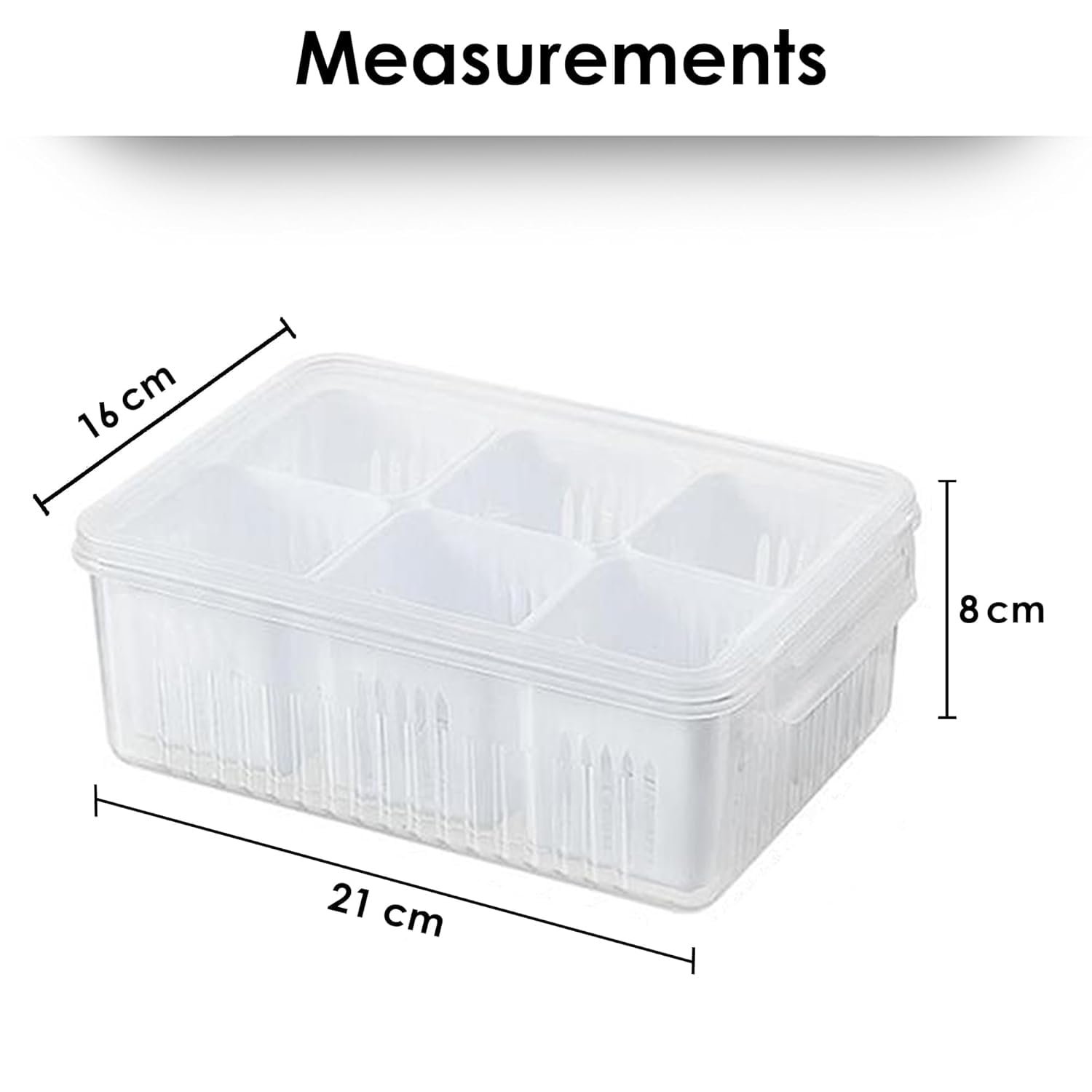 These innovative plastic containers feature six equal compartments, ideal for storing onions, garlic, cut vegetables, snacks, dry fruits, seasonings, and baby food. They fit seamlessly in most refrigerators, freezers, cabinets, and drawers. Functioning as an effective kitchen organizer, these storage boxes enhance neatness and arrangement in your kitchen.