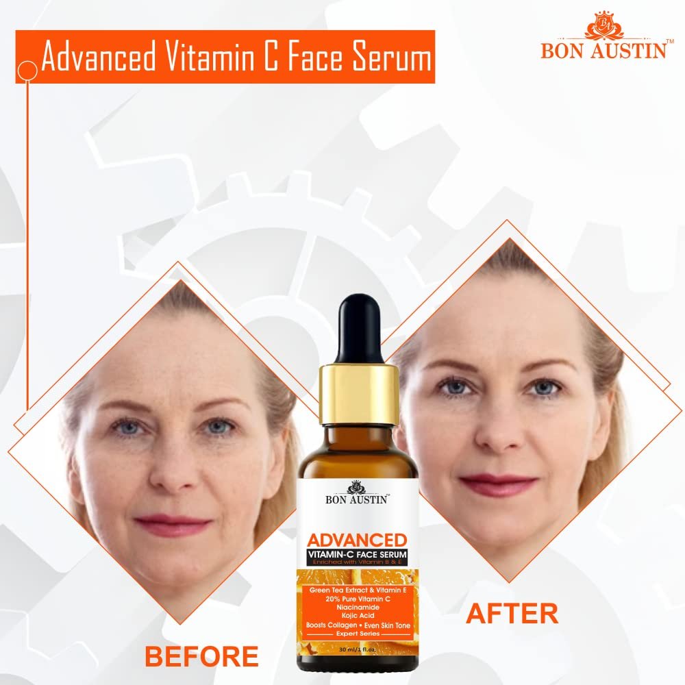 Bon Austin Advance Vitamin C Face Serum – For Bright, Firm, Youthful-Looking Skin Bon Austin Advance Vitamin C Serum is a powerful antioxidant-rich formula crafted to brighten dull skin, reduce dark spots, and promote a smooth, radiant complexion. With regular use, it helps support collagen production and protects against environmental stressors.