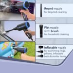 The two-speed adjustable air duster comes with a flat nozzle and a round nozzle to clean different parts. Adjust between the speed to achieve the best cleaning effect. Also it comes with an inflation head and three inflation nozzles, which you can use it to inflate air mattresses, swimming rings, balloons, inflatable pools, and more