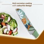 AGARO Knife Set, Printed Knife Set, Stainless Steel Knife for Kitchen Use, Home Use, Santoku Knife, Non-Slip Handle, Plastic Cover, Cutting, Slicing, Chopping, Set of 3 (Blue, Green, Pink)