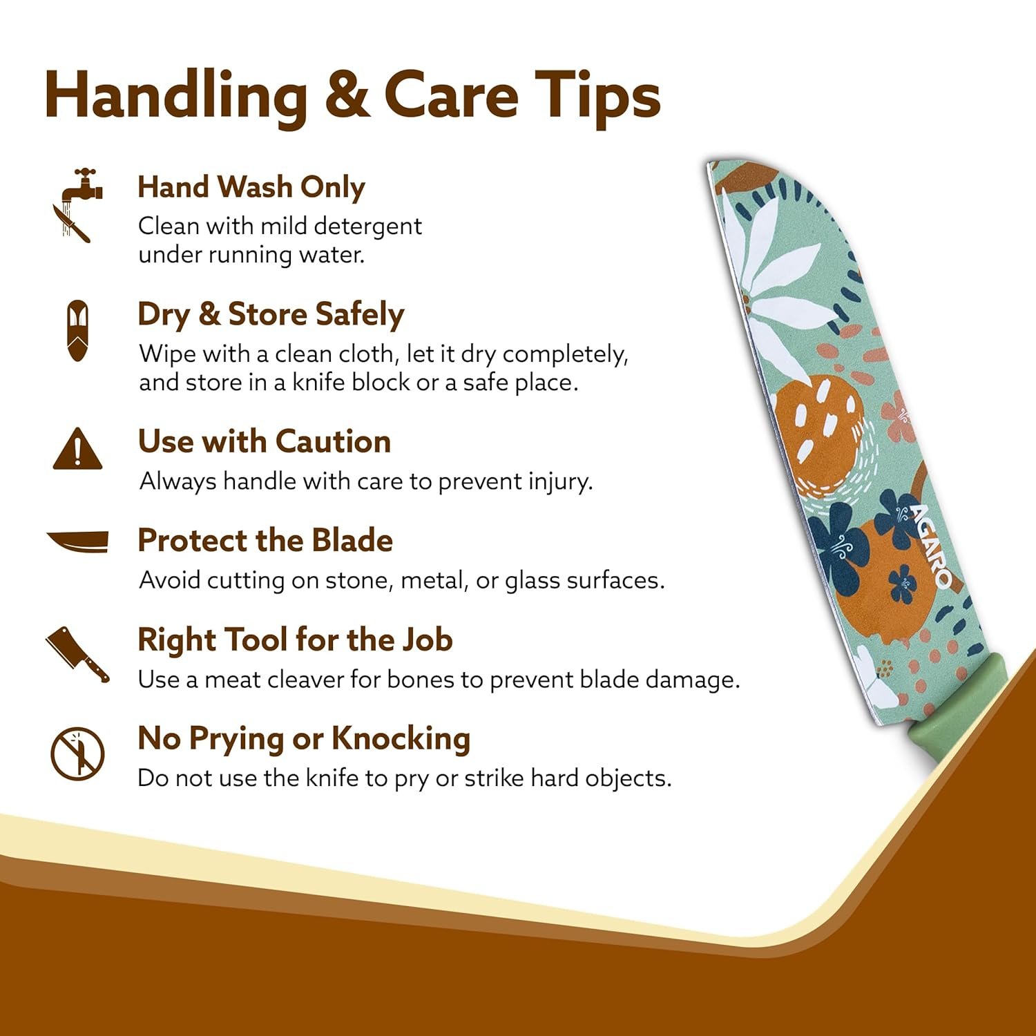 AGARO Knife Set, Printed Knife Set, Stainless Steel Knife for Kitchen Use, Home Use, Santoku Knife, Non-Slip Handle, Plastic Cover, Cutting, Slicing, Chopping, Set of 3 (Blue, Green, Pink)