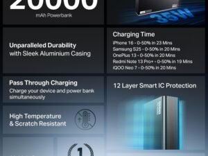 Be the first to review “AGARO Nano Power Bank 10000 mAh, 22.5W Power Delivery for Smartphones, Portable, USB A & C Output, USB C Input, Fast Charge Technology for Tablets, Headphones and Hi-Powered Devices” Cancel reply