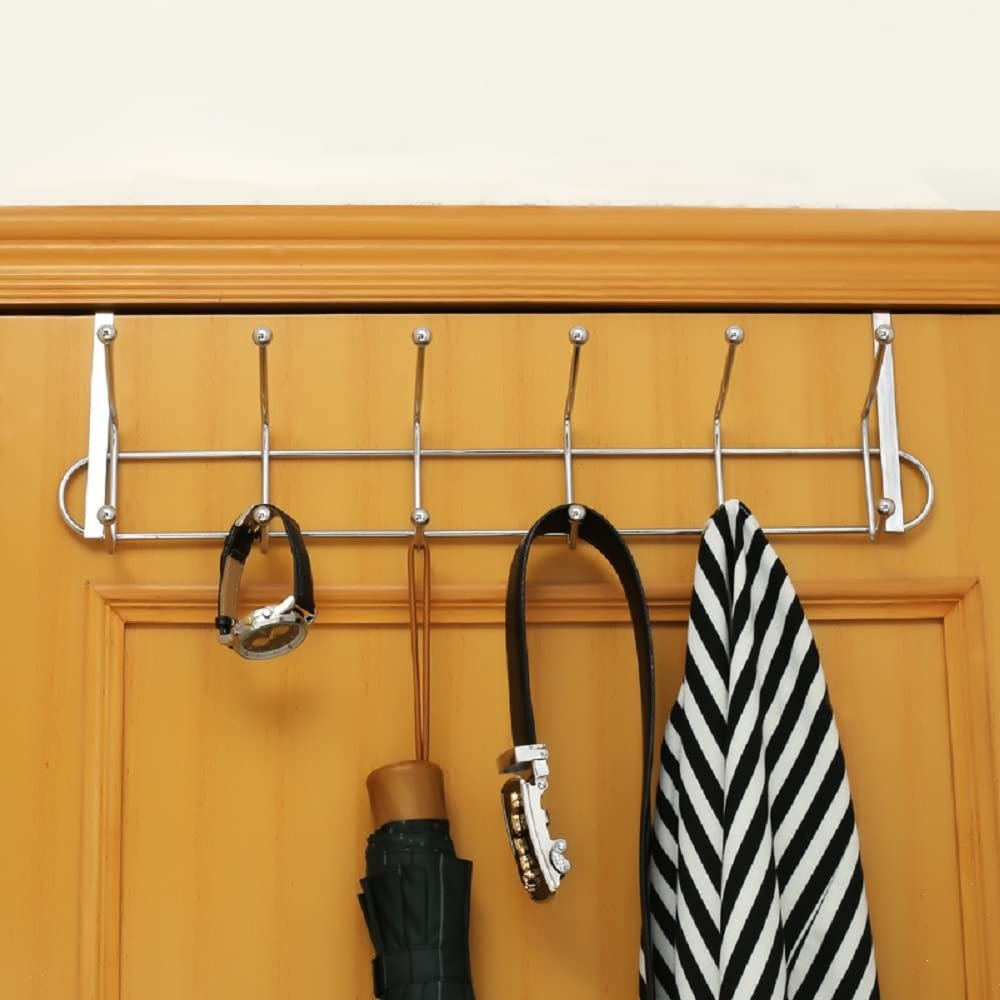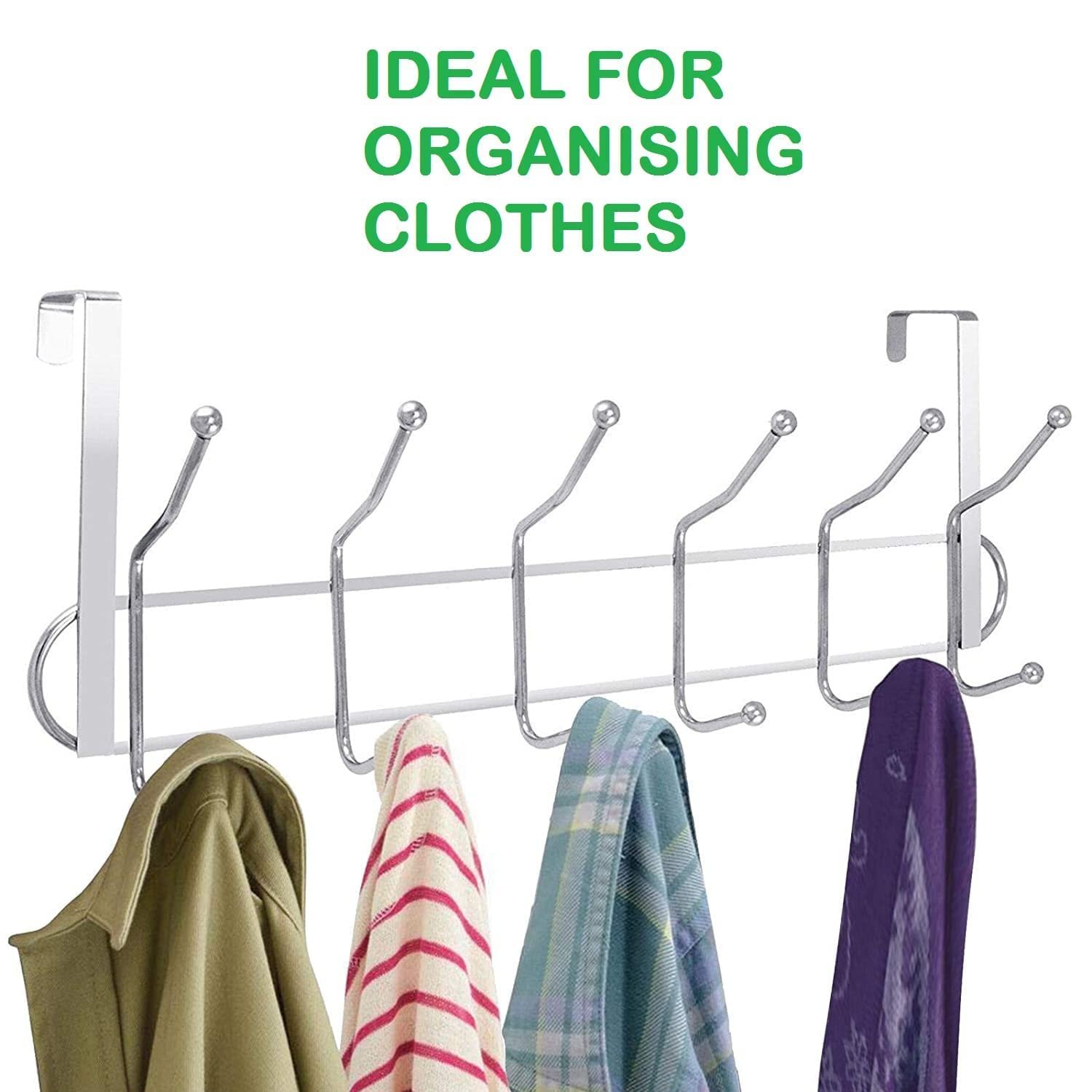 AKRIZA Metal Chrome Finish Multifunctional Door Hook Organiser/Wall Hook Hanger suitable for Room, Kitchen, Bathroom (Silver 12 Hook, 1)