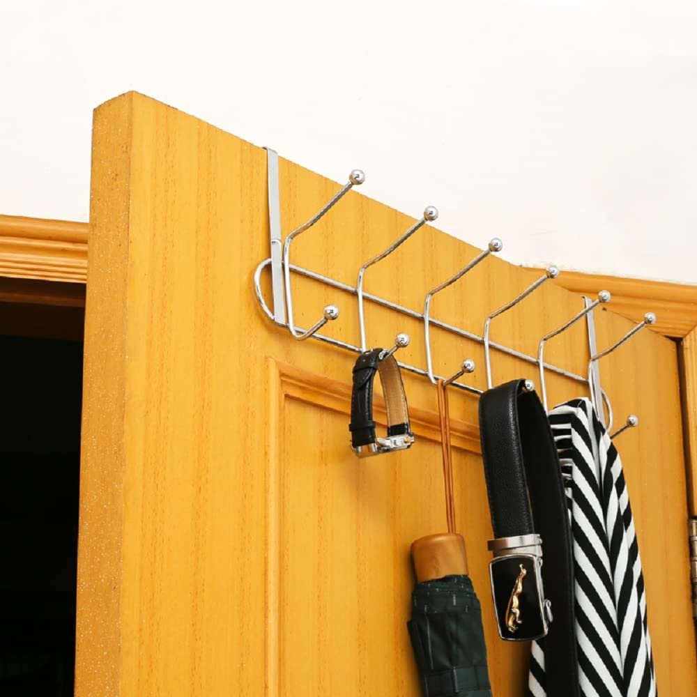 You must be tired of the Clutter in your home.Solve this problem by using the space behind the door.Just hang this Stainless Steel Door hook Organiser and then simply hang your clothes, jeans, umbrellas, jackets, scarfs, bags, keys,towel etc on these Stainless Steel door hooks