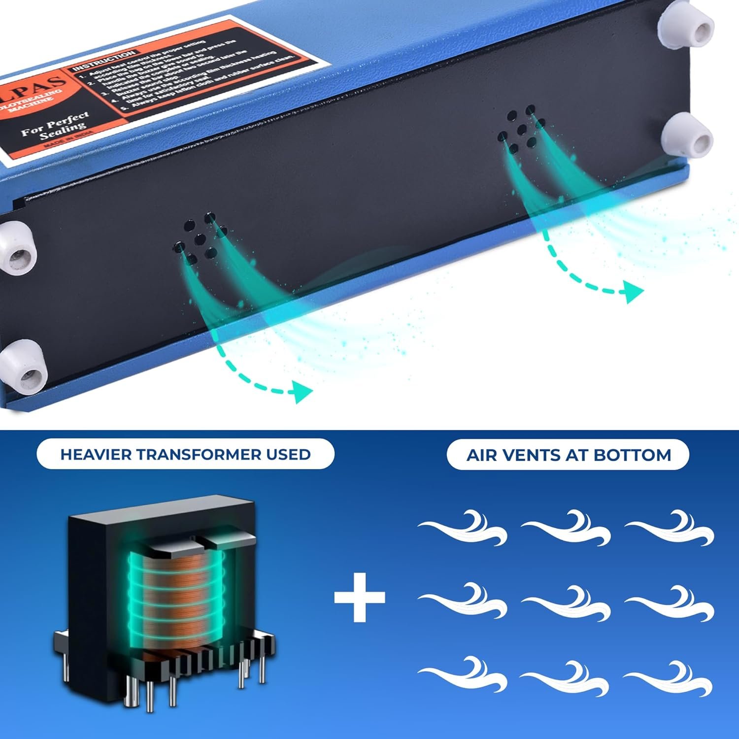𝐏𝐫𝐞𝐦𝐢𝐮𝐦 𝐇𝐞𝐚𝐯𝐲-𝐃𝐮𝐭𝐲: Crafted with durable iron construction a sleek blue finish, seal thickness-3mm, cable length-150cm and 8-inch heat sealer ensures long-lasting performance with customizable time for home kitchens, small businesses, industrial packaging. Its heavy-duty build provides stability and durability, making it perfect for sealing PE, PP, LD bags, aluminum foil, and more.