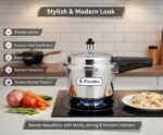 The cooker’s polished aluminum exterior adds a modern and sophisticated touch to your kitchen. Its sleek design not only enhances your cooking space but also ensures easy cleaning, making it a stylish yet functional addition to your cookware collection.