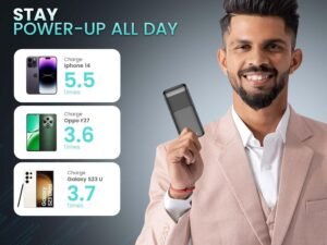 Fast charging, great backup, and can charge three devices at once. Build quality is solid and looks stylish. Perfect for daily use and travel. Total value for money.