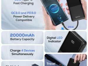High-Capacity Battery: With a robust 20000 mAh capacity, it can charge a 3000mAh phone battery up to 4.7 times and a 4000mAh phone battery up to 3.5 times, ensuring prolonged usage on the go.