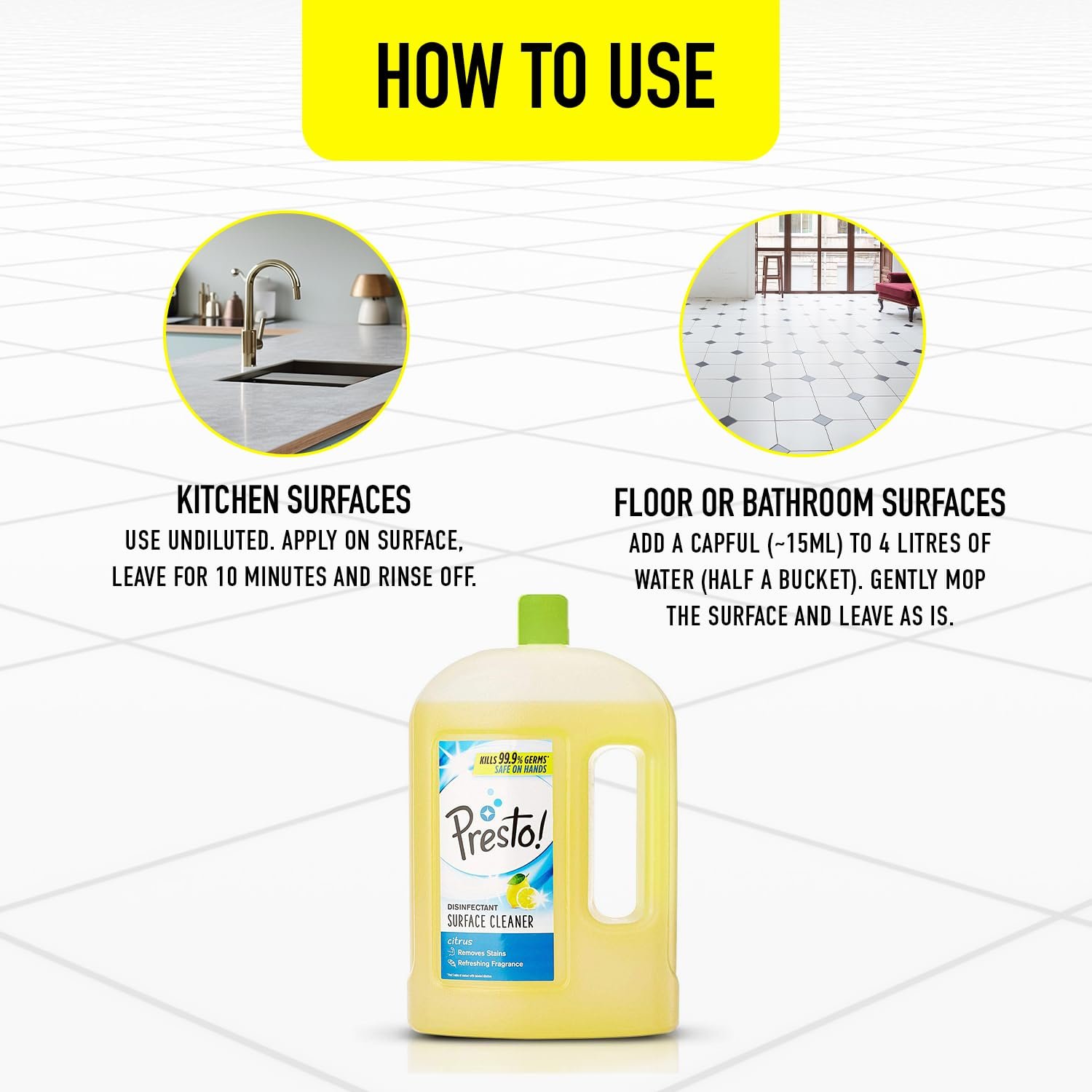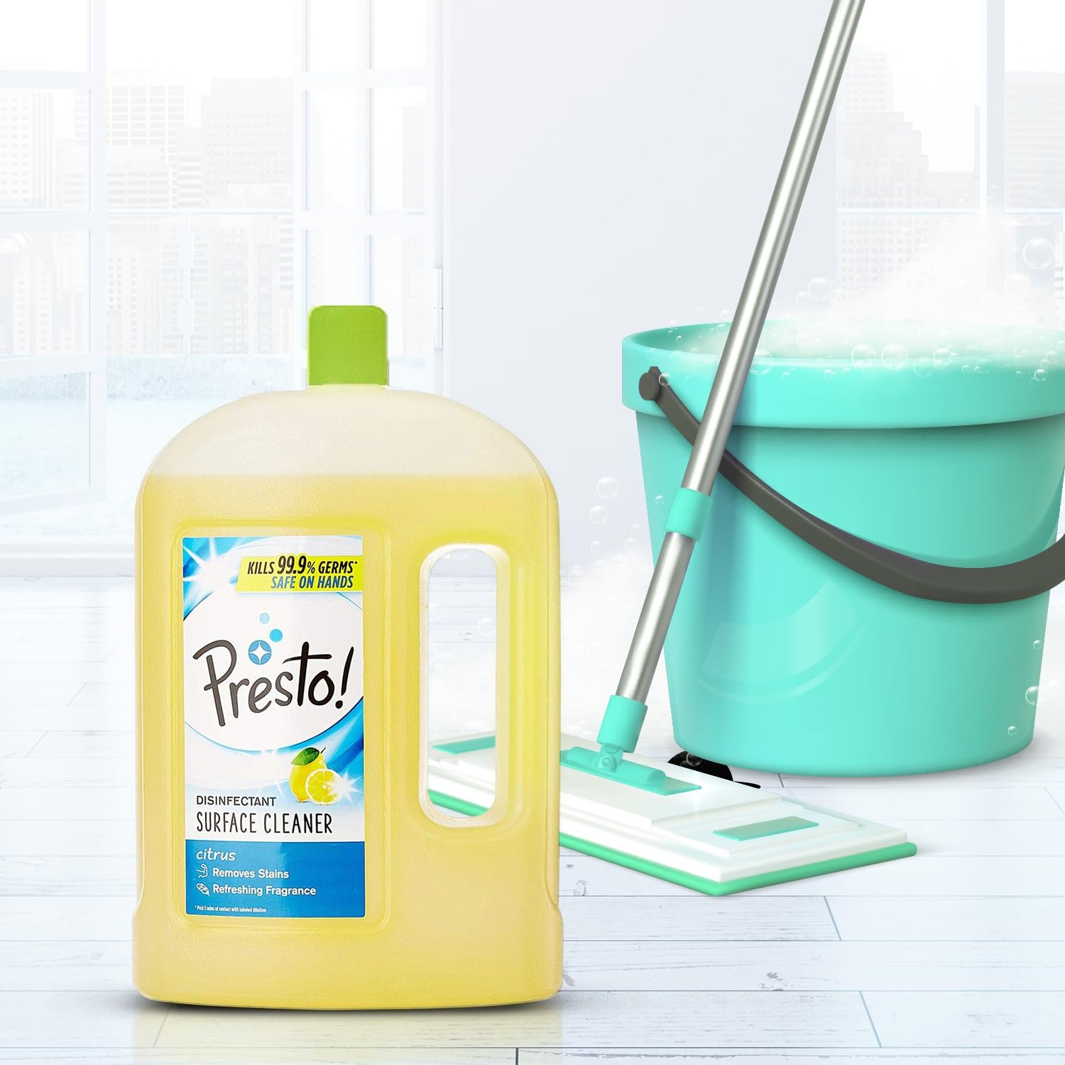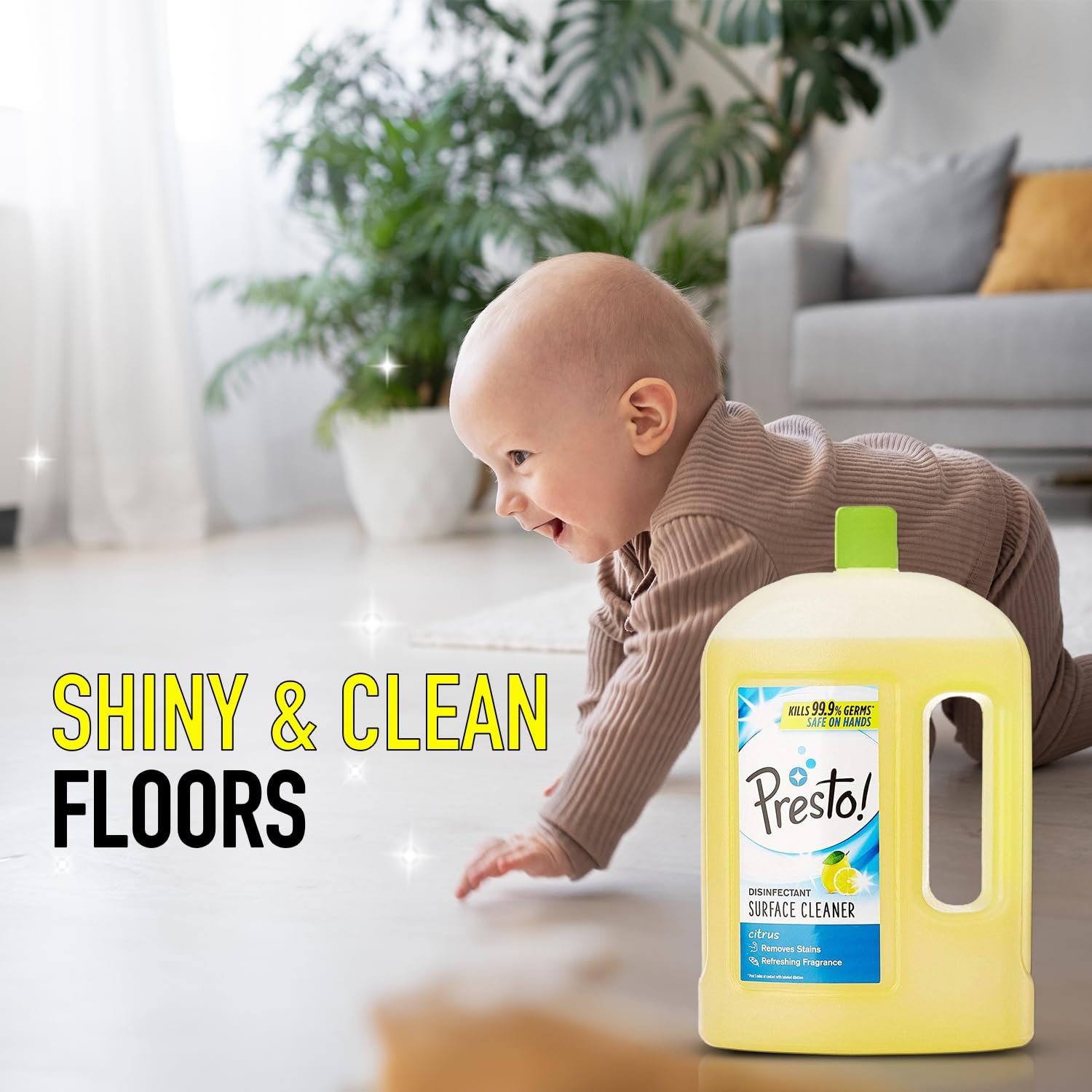 Introducing a new range of Surface cleaners from the international brand Presto! This Surface cleaner keeps your home fresh and free from germs. It can kill 99.99% of all germs.*