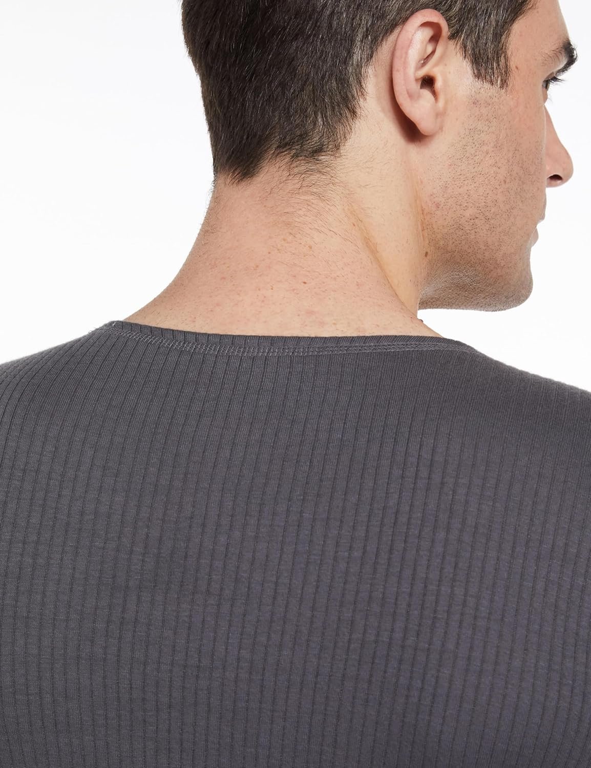 Super combed cotton rich mild brushed rib structured fabric with snug tailored fit. Binidng finish at neck with ribbed elastane cuffs to prevent riding up. Label free for all day comfort.