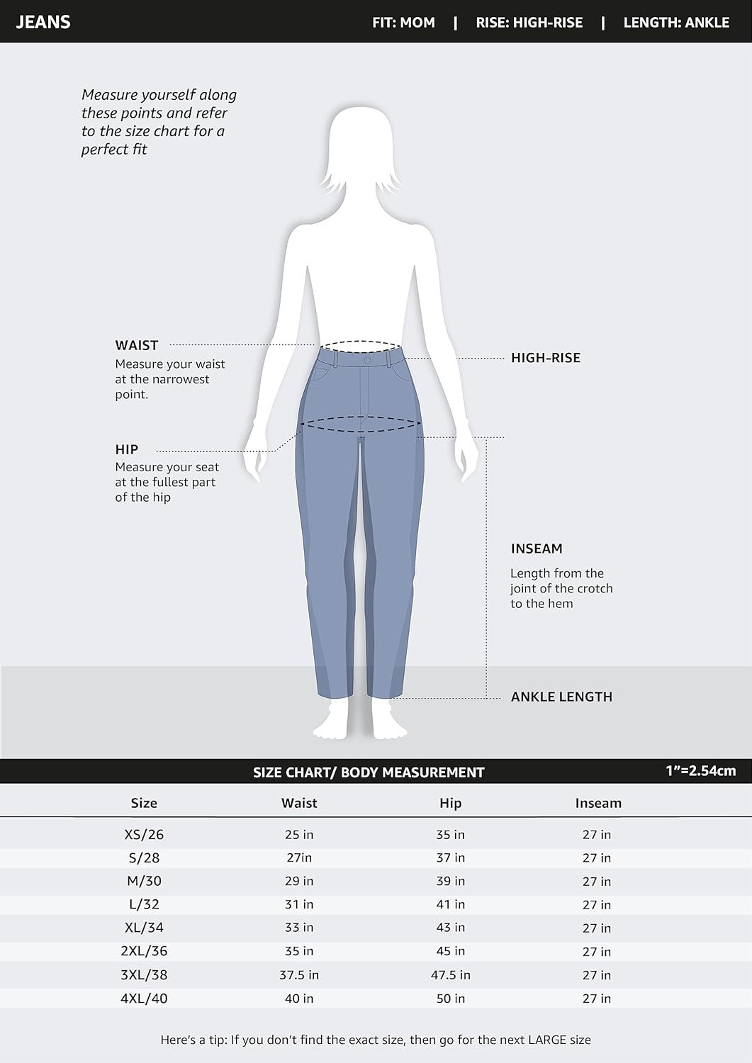 Amazon Brand – Symbol Women’s MOM Fit Jeans (High Rise | Ankle Length) (Available in Plus Sizes)