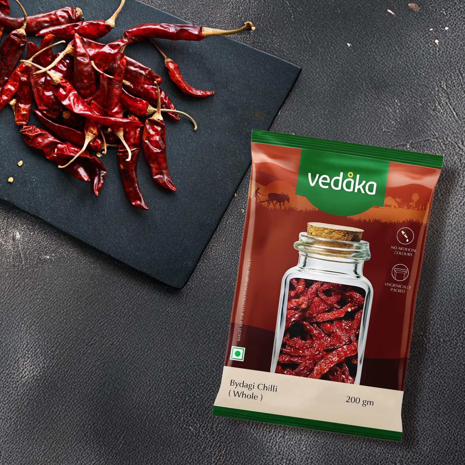 Experience the bold, aromatic essence of Vedaka Bydagi Chilli, a good-quality spice known for its vibrant red color, rich flavor, and mild heat. Perfect for adding authentic Indian taste to curries, marinades, and chutneys, this carefully sourced Bydagi chilli is a favorite among home cooks and professional chefs alike.