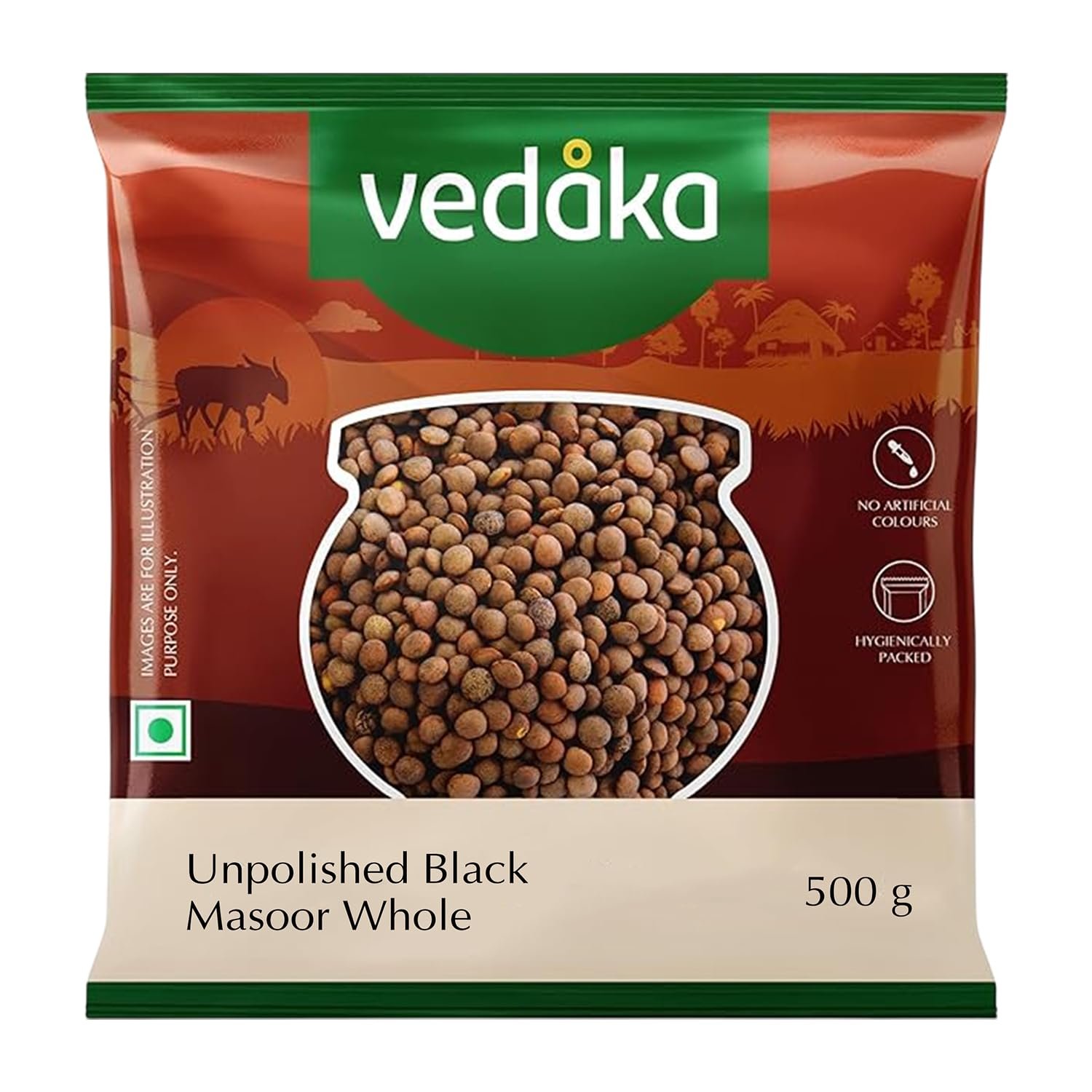 Amazon Brand – Vedaka Unpolished Black Masoor Dal | Whole | 500 G | Premium Black Masoor Dal