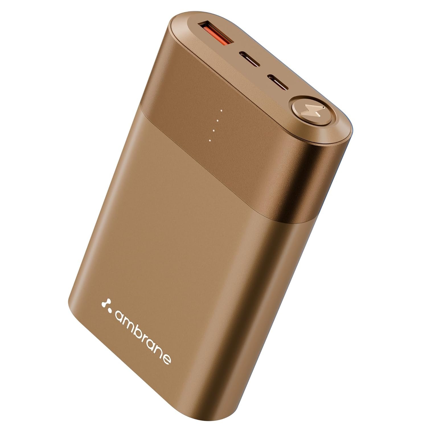 Ambrane 20000mAh 33W Fast Charging Power Bank, Super Fast PD 3.0 | Type-C Input & Output | Triple Output Ports, Compatible for iPhone,Smartphones, Tablets, Earbuds, Smartwatch (Powerlit Duo 30 Golden)