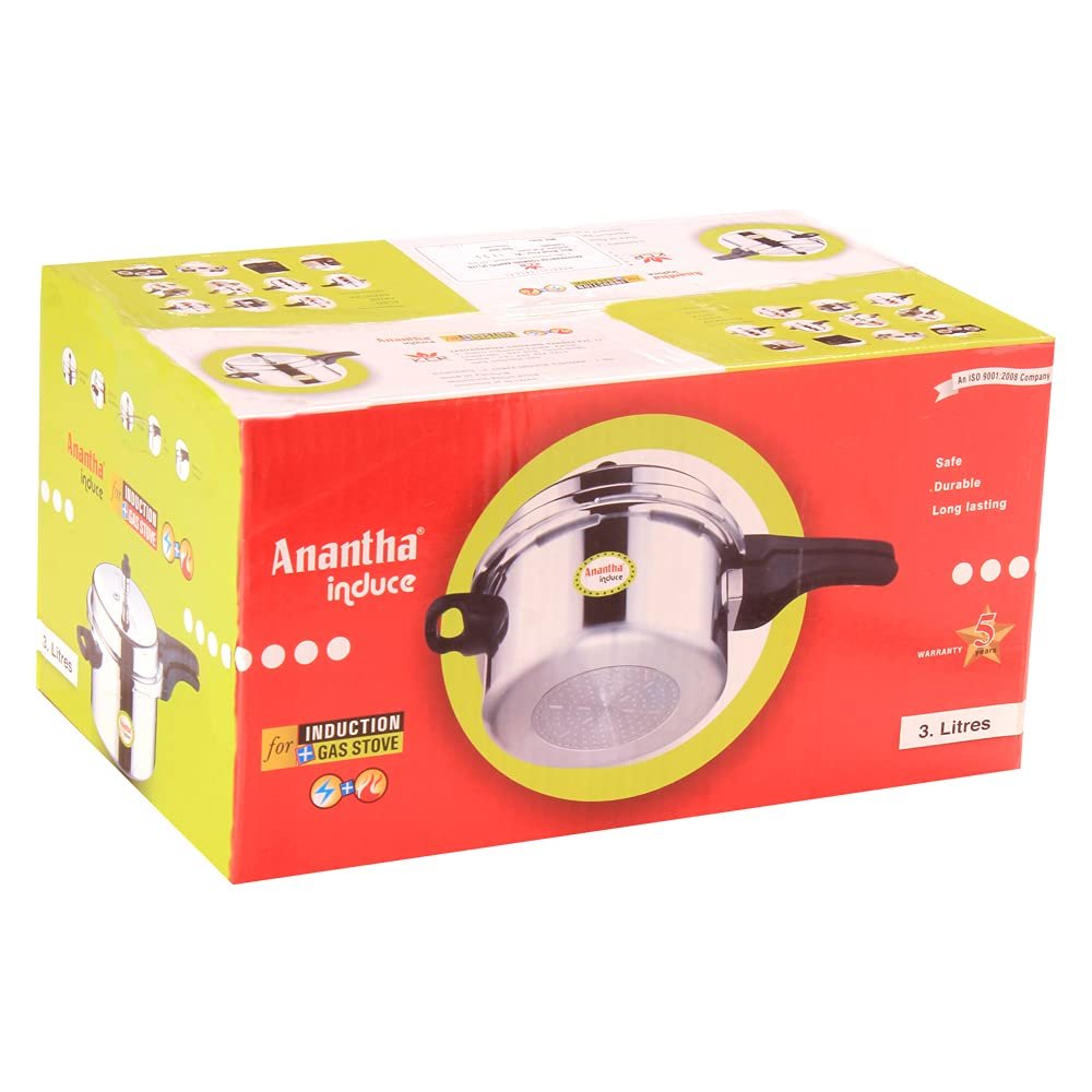 Anantha Induce Cookers 3L – Induction Base Aluminum Pressure Cookers Three Litre to easily Prepare food for Three to Four persons. This modern pressure cooker is traditionally designed to be incredibly safe and stylish. The handles with double screw ensure a firm grip and improves the sturdiness of the cooker. Our Induce Cookers are Suitable for Induction, Gas, Electric, Ceramic and all other cooktops. Our High Quality Pressure Cookers Saves Energy, cooks fast and is the most versatile cooker available.