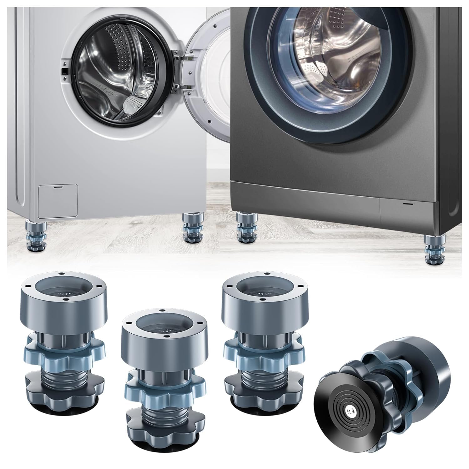 Washing Machine Vibration Pads, Floor Trays, Washing Machine Stand,Height Adjustment Feet for Refrigerators, Fridge Stands with Anti-Slip Rubber (4 Pcs Set)