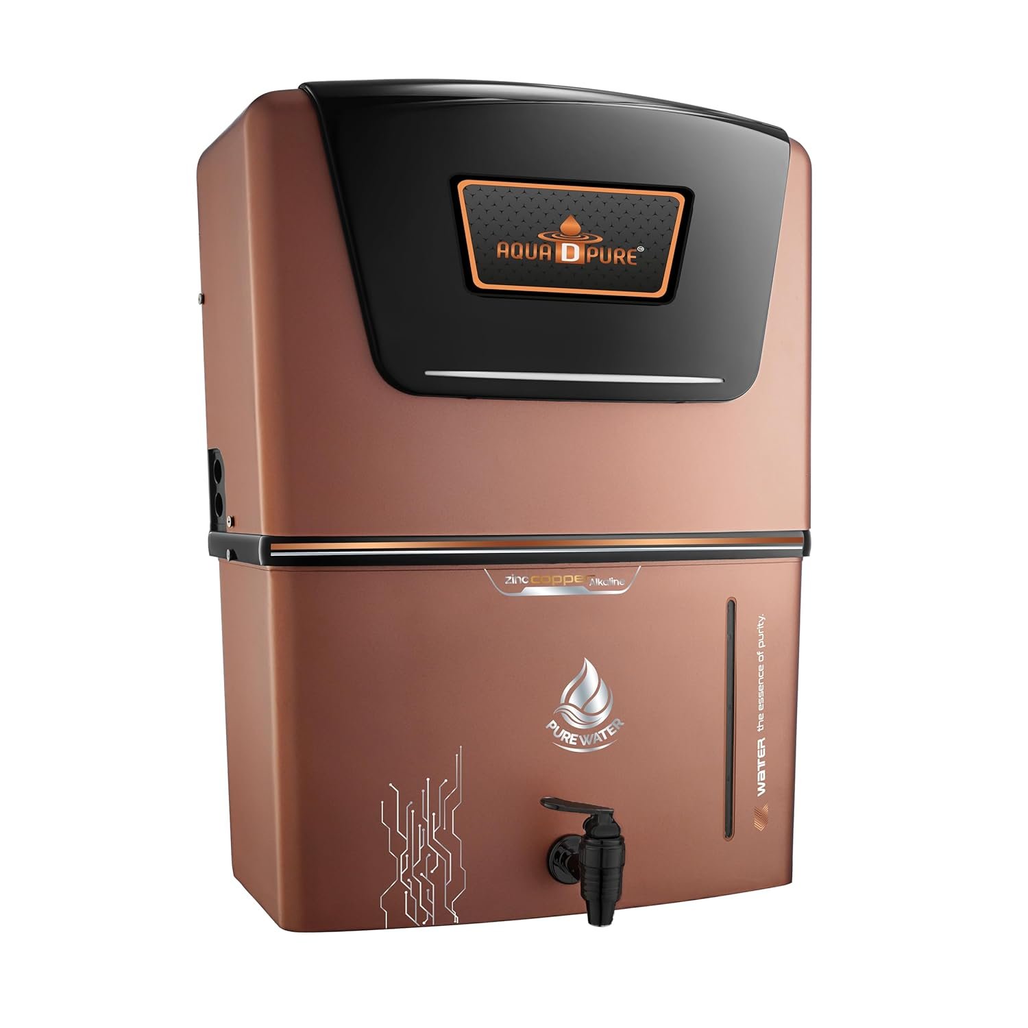 AQUA D PURE RO Water Purifier | Copper + Zinc + Alkaline Technology | Elegant Black & Copper Wall Mount | Ideal for Home & Family (Sonet Gold Zinc)