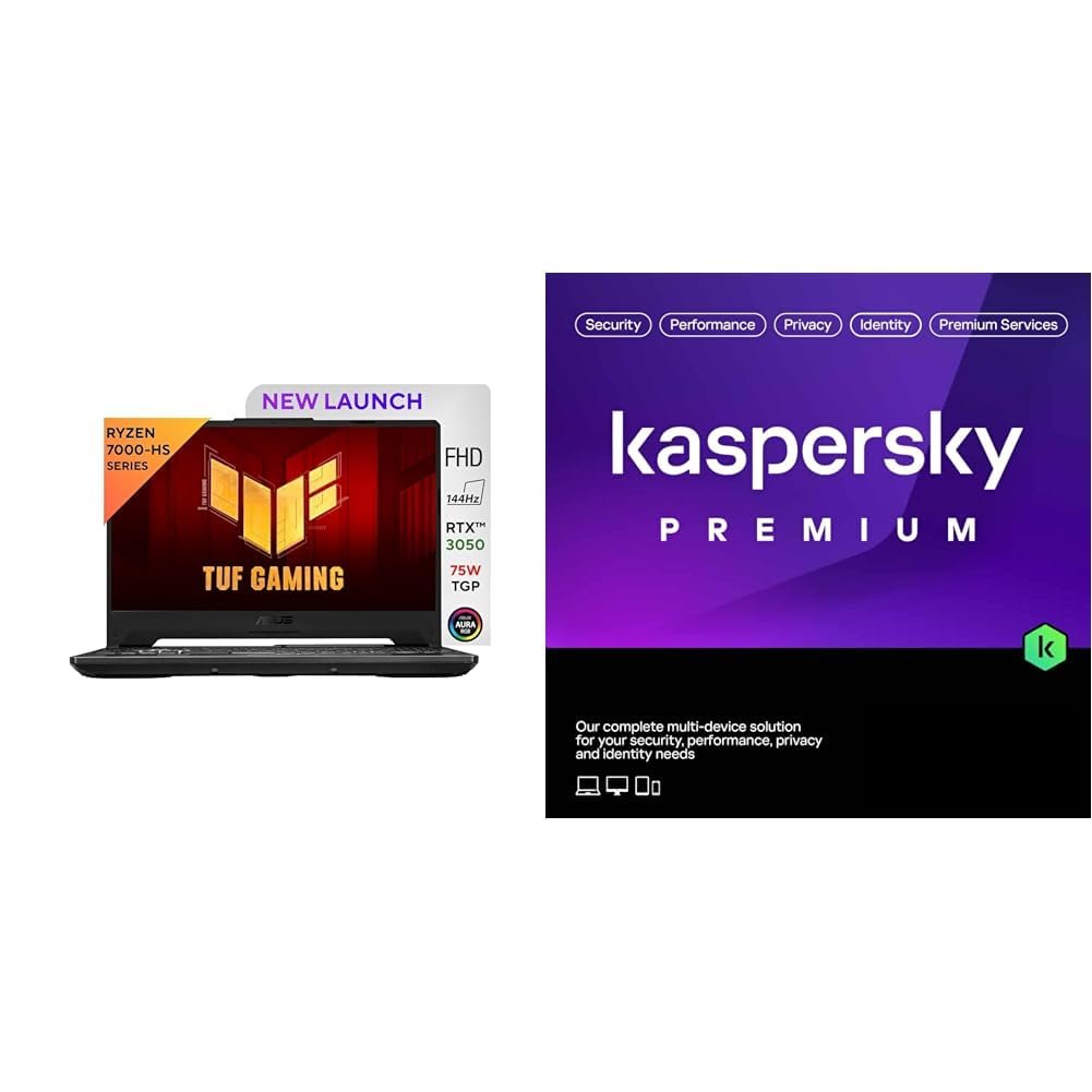 ASUS TUF Gaming A15, AMD Ryzen 7 7435HS Gaming Laptop(NVIDIA RTX 3050-4GB/60W TGP/16GB RAM/512GB SSD/FHD/15.6″/144H + Kaspersky Premium 1 Device 1 Year (Physical Pack)