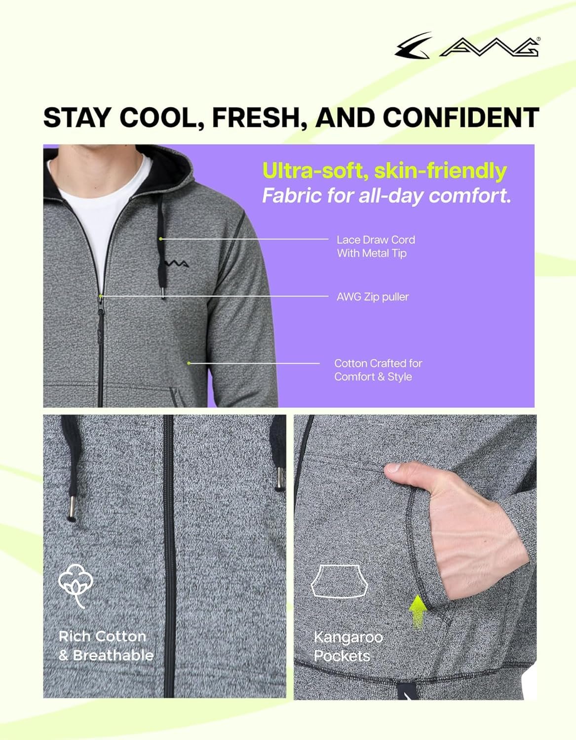 AWG ALL WEATHER GEAR Hoodies for Men | Men’s Solid Hooded Sweatshirt | Winter Wear | Pullover | Jackets for Men Stylish | Zipper Hooded Sweatshirt